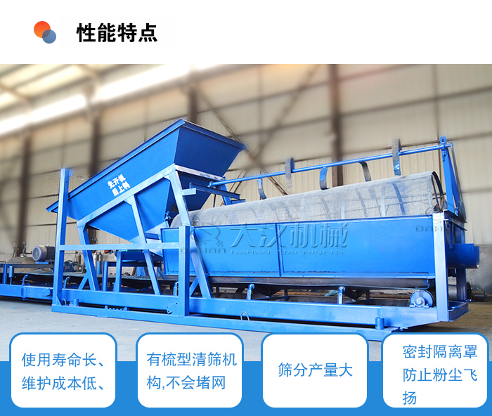 1、采用了滾動輸送的原理,摩擦系數(shù)小、使用壽命長、維護(hù)成本低、且篩孔不易堵塞;