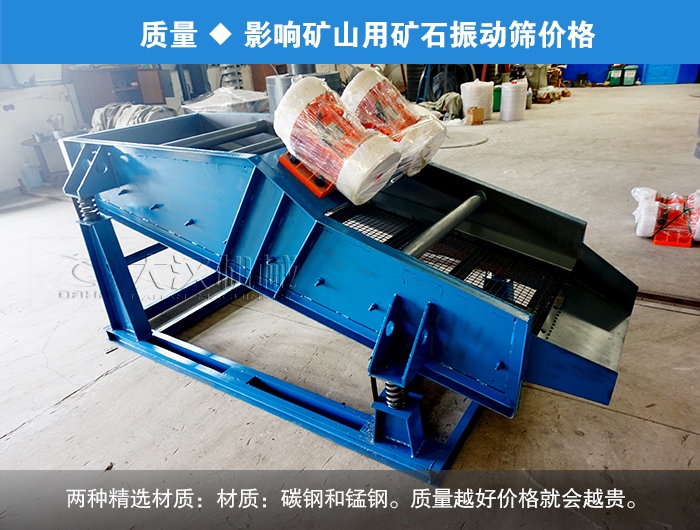 大漢機(jī)械生產(chǎn)的礦山用礦石振動(dòng)篩應(yīng)用廣泛,不同的型號(hào)、質(zhì)量、廠家的礦用振動(dòng)篩價(jià)格都不一樣,那么影響礦山用礦石礦用振動(dòng)篩的價(jià)格因素有哪些呢?