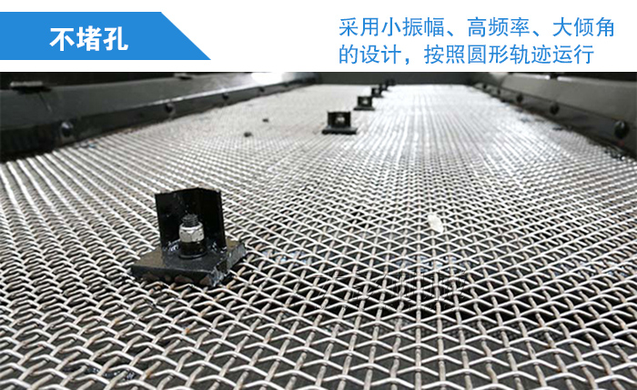 圓振動篩采用小振幅、高頻率、大傾角的設(shè)計,按照圓形軌跡運行,篩面上的礦石不斷翻轉(zhuǎn)和松散著向前前行,小顆粒的鐵礦石有更多機會透過物料層并完成篩分,同時圓形軌跡還可使卡在篩孔中的物料跳躍出來,避免了篩孔堵塞,提升了整臺設(shè)備的篩分效率。